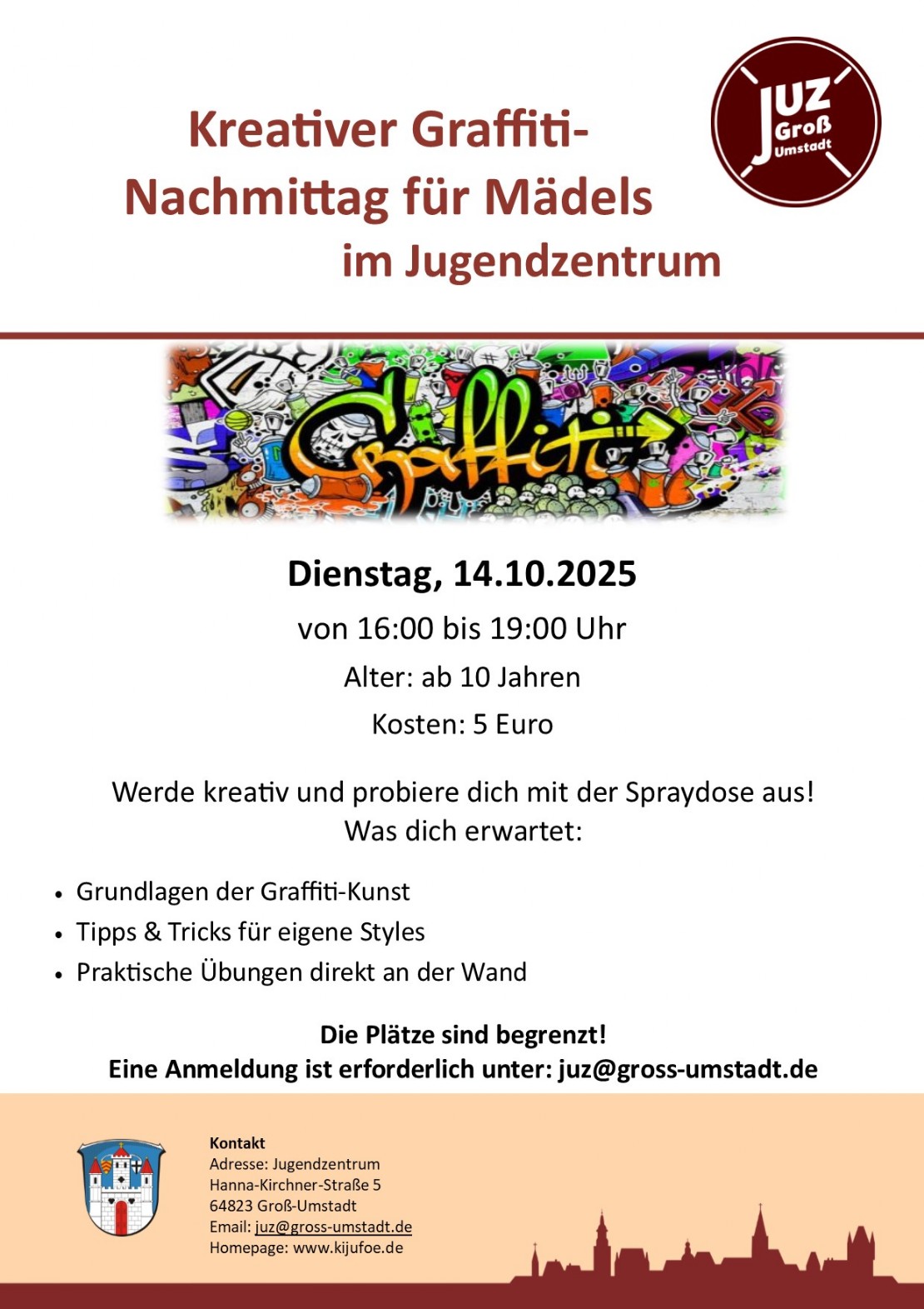 Die Plätze sind begrenzt! Eine Anmeldung ist erforderlich unter: juz@gross-umstadt.de